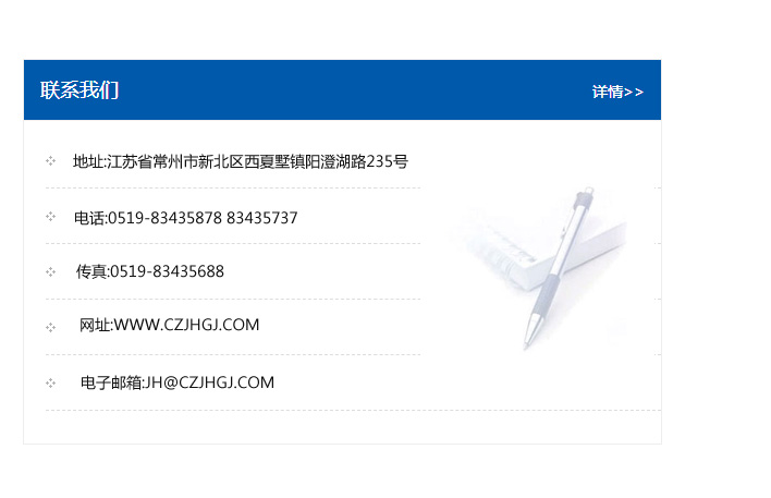 地址:常州市新北區(qū)友邦商務(wù)大廈1幢16、17層  電話:0519-85101652  傳真:0519-85112595  郵編:213022  網(wǎng)址:www_cz-jiayue_cn.wiki-beauty.com  郵箱:xiajifengaa@163.com